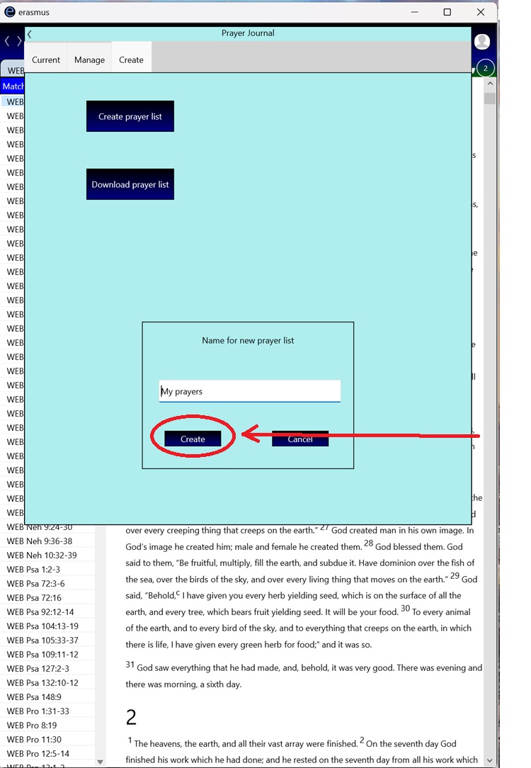 6. Press the "Create" button to create your new prayer list.