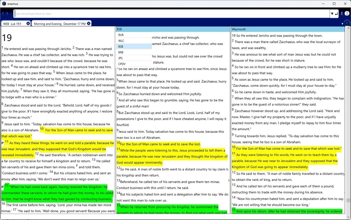 erasmus Multi-Pane Display of Bible Parallels